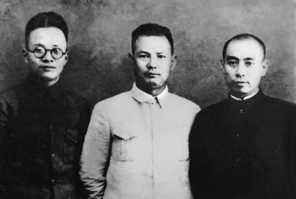 西安事变发生后,中共中央坚决主张和平解决,遂派周恩来(右)、叶剑英(中)、秦邦宪(左)赴西安参加谈判。