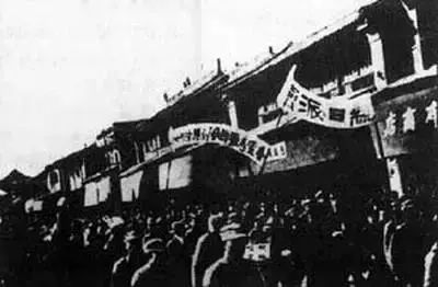 西安军民为支持张学良、杨虎城的抗日壮举上街游行