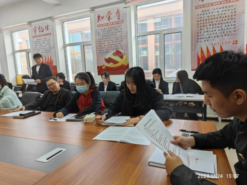首先,董建男清点参会人数、介绍大会主要内容和具体流程。随后,会议第一项,支部书记宣读发展对象名单;由郑文玺等27名发展对象逐一宣读《入党志愿书》并做出汇报。会议第二项,由入党介绍人从思想觉悟、学习成绩、日常表现等方面对发展对象在入党积极分子考察期间的情况进行介绍评价,并对其能否加入党组织表明态度。会议第三项,由支部书记介绍发展对象政审及征求群众意见情况。会议第四项,入党介绍人、支部委员及参会党员对发展对象进行提问并发表意见;郑文玺等27位发展对象对提出的意见进行表态。会议第五项,全体正式党员关于是否同意郑文玺等27位同学加入党组织进行了举手表决,大会同意接收郑文玺等27位同学为中共预备党员并报学院党总支审批。会议第六项,由郑文玺等27位同学发表预备党员接收感想。