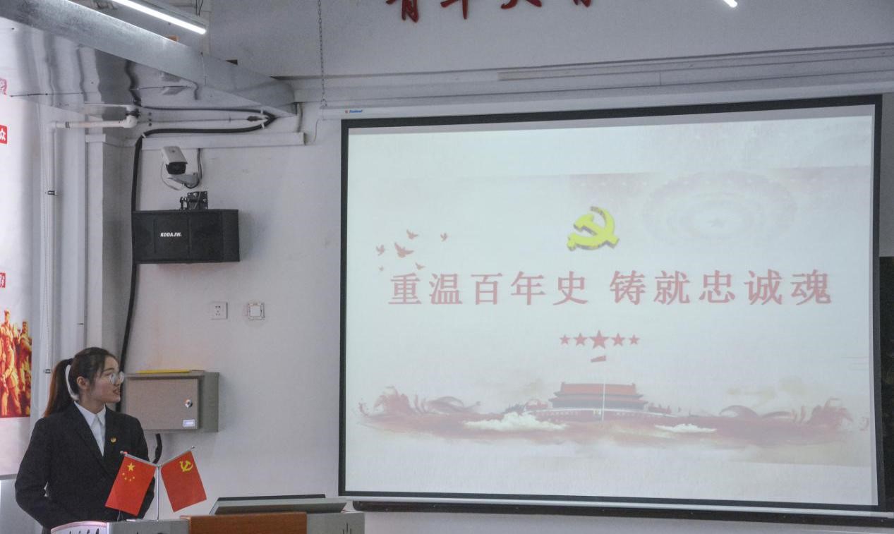 伴随着国歌激昂旋律的结束,由大二员工代表金雨婷同学进行“党史讲坛”主题微团课,金雨婷同学说到,员工们要从百年党史中感悟初心使命,风雨兼程百年路,不待扬鞭自奋蹄。在建党100周年之际,同学们更应学党史、悟思想,办实事、开新局。
