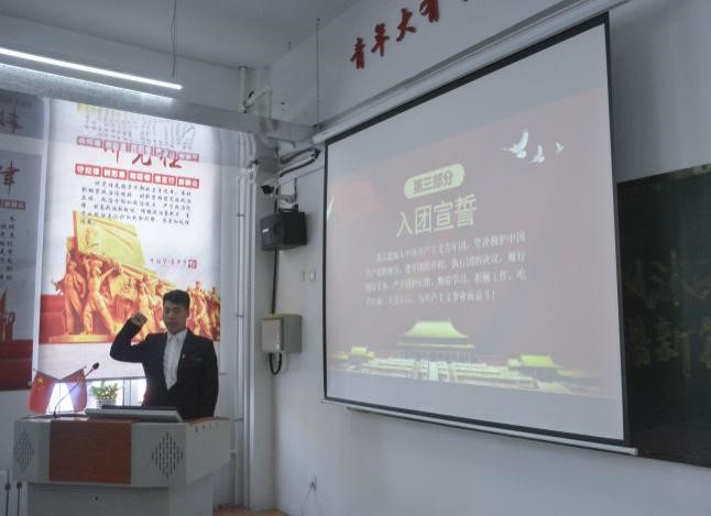 在同学们备受鼓舞之时,李龙海同学带领大家宣读入团誓词,重温入团那年许下的神圣誓言,深切地感受到作为团员的荣耀和责任,成为激励他们做好新一代优秀青年的引路灯。