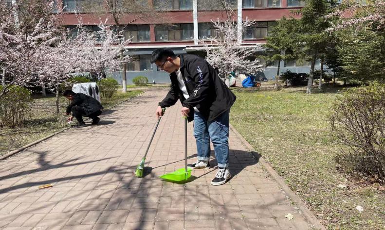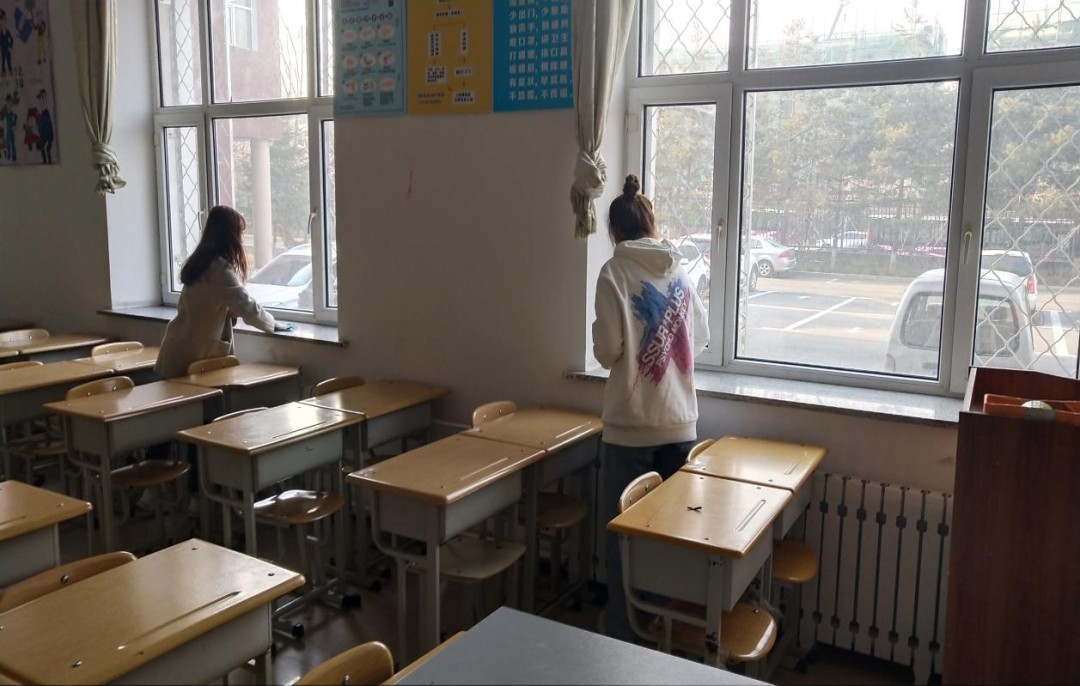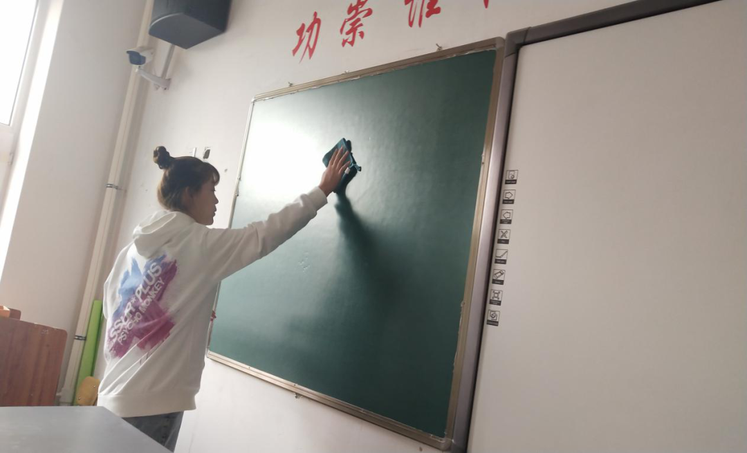 第二组党员志愿者则前往教室,按照活动任务分配,两人一组展开活动。志愿者的劳动热情高涨,积极高效的完成打扫任务,不放过任何一个卫生死角,从大范围到小细节,所有平时容易忽略、打扫不彻底的地方都进行了全面的清理,坚持不错过一个角落的原则,认真打扫,最后摆放好打扫工具。