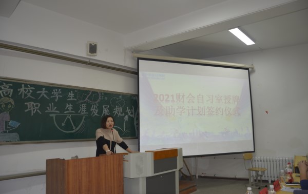会议伊始,由必赢76net线路副经理李晟璐给同学们介绍了会计学专业的就业方向级学号会计学专业的重要性。随后,企业方代表陈欣发言,介绍财会自习室的建立及助学计划,为同学们努力提升自己搭建学习平台。其次,由李晟璐经理与正保远程教育市场部副总监陈欣进行财会自习室授牌及助学计划续约仪式。