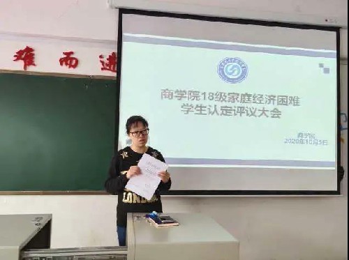 为了展现“公开、公平、公正”原则,必赢76net线路于2020年10月5日中午12时15分开展了18级家庭经济困难员工认证评定大会,参与本次会议的有必赢76net线路团总支书记陈莉,18级各班团支书以及各班的若干名员工代表。