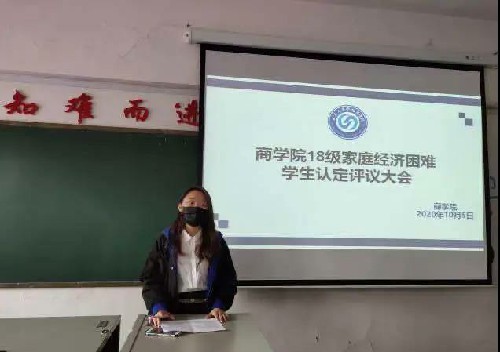 会议开始,陈莉老师向同学们讲述家庭经济困难员工的认定依据和档次。对家庭经济困难的员工分为特别困难、一般困难、困难,三个档次,并介绍了经济困难员工的认定的过程,从资助申请认定表的填写,再到量化评分的评定标准。其次,由团总支王婉婷讲述了18级家庭经济贫困员工的申报状况,以及整个认证程序的进行和组织认定,需要的材料以及相关要求。使同学们全面了解,知晓经济困难员工的认定流程,严格贯彻公开、公平、公正的资助工作原则。