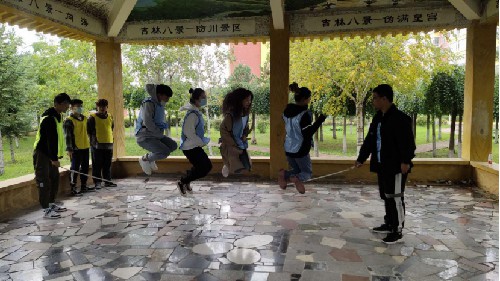 第二轮游戏则是对团队协作的挑战,每组两名队员摇绳,四名队员跳绳,累计在两分钟之内跳绳次数多的队伍获胜。在各个队员之间的密切配合和共同努力下,让本轮游戏的现场氛围变得更加活跃。