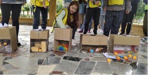 下一轮游戏“未知的挑战”,各组队员分别挑选箱子,在神秘箱子中正确的摸出乒乓球,宝箱之所以神秘就是因为里面藏有的东西都神秘莫测。游戏的惊奇刺激,将本场活动推向高潮。