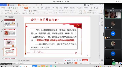 课上,王微老师先对同学们在这个漫长特殊的寒假里为抗击疫情贡献出了自己的力量给予褒奖,然后发布本堂课的话题讨论:爱国主义会不会过时?随后围绕疫情下新时代老员工的爱国行动举例,凸显出我国的民族精神是以爱国主义为核心的。其次,王微老师引导同学们探索爱国主义的基本内涵,真正做到爱国就是要爱祖国的大好河山、爱自己的骨肉同胞、爱祖国的灿烂文化。最后,王微老师引用习近平总书记在纪念五四运动的讲话,讲述了新时代老员工弘扬爱国精神的重要价值体现是实现中华民族伟大复兴中国梦的精神支柱、实现祖国统一维护民族团结的精神纽带、个体实现人生价值的力量源泉。课后同学们感慨中华民族是一个不屈不挠的民族,每经历一次困难就会成长许多,中华儿女不会被灾难打倒,只会变得更加强大。