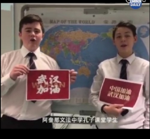 世界各地都心系武汉!英国北爱尔兰奥斯特大学孔子学院的小学课堂上,孩子们用中文录制《让世界充满爱》,董事长老师们纷纷送上祝福:中国加油!武汉加油!