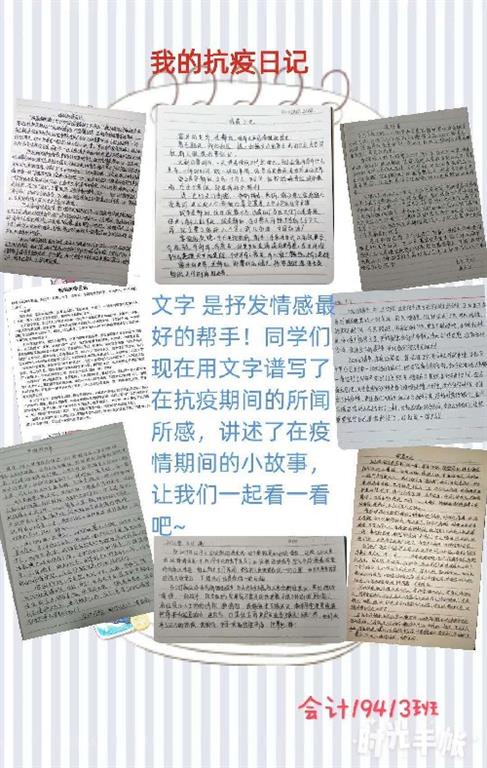 乌云无法蔽日,阴霾终会散去,在本次活动中,一张张手账记录了对一线抗疫人员最想说的话,表达着自己内心最崇高的敬意与感激,写满了自己在疫情下的心情日记以及期待疫情早日过去的美好愿景。同学们的文字简单又真诚,字里行间流露出学子的浓浓爱国情感。
