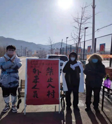 小故事2:2019级市场营销八班的孙昌宁同学,在抗击疫情中参加了村委会举办的防疫检查工作。虽然室外寒风凛冽,但他仍坚守在岗位上,对过往车辆进行详细登记,同时还协助社区做好家庭防疫工作。他用爱和勇气直面困难,用信心与责任与全国人民一起共克防疫时艰。