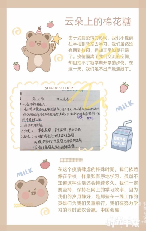 相信看到这的你,一定有许多感叹,笔记不必拘泥于某种形式,无论文字还是图表只要清晰有效的就是好笔记! 希望大家以最适合自己的学习方法为舟,共同享受在学海中畅游的乐趣。共抗疫情,爱国力行,我们在行动!