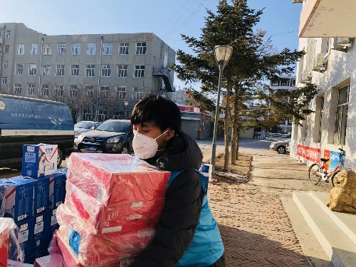 2月9日,他与17名志愿者一同将第二批爱心物资送至松原市疫情防控领导小组办公室,专门慰问一线医护人员,每派送完一个地方,他便向一线的人员深深地鞠一躬。当问及为何如此,他说:“向始终奋战在一线的人员致敬,他们才是救人于水火的英雄,是和死神谈判的天使。我希望通过捐献这些酸奶、饼干守护他们的健康,用实际行动支持他们的工作。