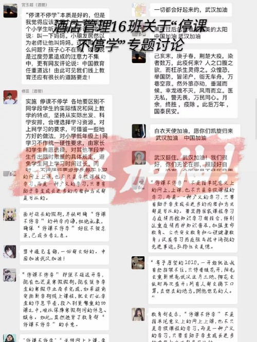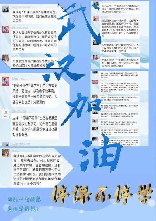 在“停课不停学”专题讨论交流中,同学们纷纷表示对延长的假期会做好自学规划,牢记时代赋予的使命。
