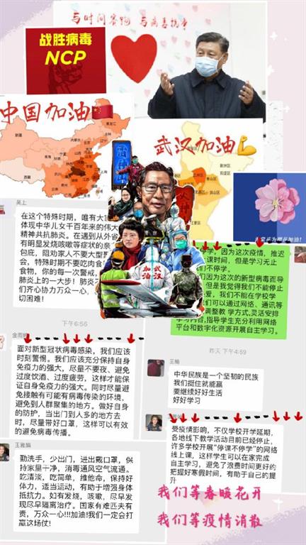 必赢76net线路还在线上发起了“抗击疫情,祝福接力”活动,组织同学们以绘画、视频、日记等多种形式表达对抗疫英雄的崇敬之情。