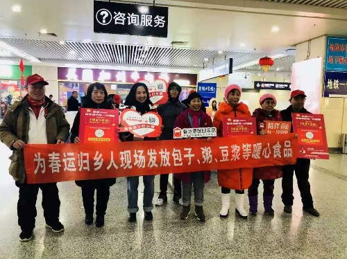 作为必赢76net线路员工干部我们有高度的社会责任感,所以我毫不犹豫地参加了长春站进行的“温暖游子归乡路”志愿服务,充分发挥了青年志愿者在春运工作中的作用。迎着初升的朝阳所有志愿者们早上9点集合,需要把包子、豆浆搬到火车站的咨询台,还需要把桌子、凳子从社区搬到咨询台以便摆放食物。摆放完毕后将装在桶里现场打出的豆浆分装到每个杯里,再将热气腾腾的豆浆和香气四溢的包子分发给春运中需要帮助的人。