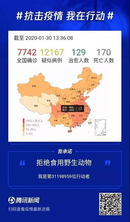 来看看最新疫情状况,截至1月30日,全国确诊新型冠状病毒肺炎病例7742例,其中129例出院,170例死亡。