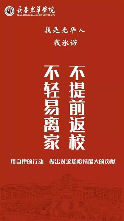 亲爱的老师和同学们,让我们携起手来,怀着必胜的信心,共同防控新型冠状病毒感染的肺炎疫情,为早日战胜疫情作出应有的贡献。