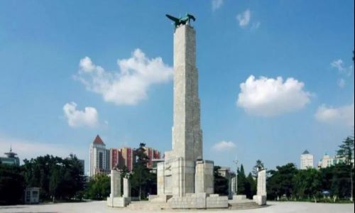 东北光复后,苏联红军进驻长春,在此修建苏军烈士纪念碑,纪念苏联为了解放东北而牺牲的23名苏联飞行员。纪念塔面由苏联人设计,为花岗岩质地实心塔。塔身的底部四面用中、苏两国文字镌刻“中苏友谊万古长青”、“苏军烈士永垂不朽”铭文,以及牺牲苏军将士的姓名,并饰以浮雕花纹。