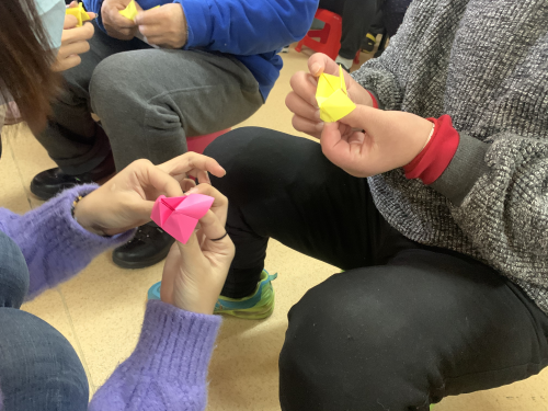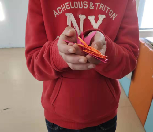 联欢会结束后,志愿者们将精心准备的手工纸分发给心理疾病患者,并进行现场教学,用患者折好的手工作品装点活动室的墙面。看到患者们露出了灿烂的笑容,志愿者们的心中也温暖无比。身为一名志愿者会带着向上的正能量,心里充满爱心,并且把这份爱心一直传递下去。