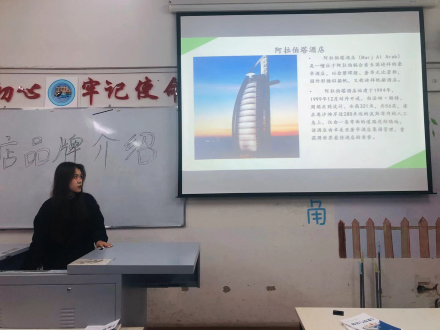 这次活动以15、16班班代胡吕豪以及牟晋彤对此次主题班会“酒店品牌讲解”的介绍正式拉开了帷幕,期间通过同学们讲解的PPT上的内容,更是增加了同学们对酒店品牌的了解,以及对本专业的理解,使同学们对本专业有了更深一步的认知。15班的四位同学于波、赵春雪、吴欣阳、白婧分别上到了讲台为各位同学们介绍了各个酒店的品牌,加上有他们制作的图文并茂的PPT,大家都听得津津有味,不时的发出阵阵掌声和欢笑。四位同学的介绍也都表明了他们对此次活动的用心,在此次的活动中,同学们的氛围都很好,认真聆听,互相讨论,现场的气氛十分火热,其中提出了几个问题,同学们也积极的回答,很配合台上的四位同学。相信通过此次活动也会提升大家的专业知识,加深了对酒店品牌以及今后的就业方向的了解。