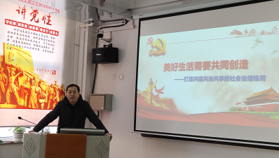 紧接着,高教授又对新时代社会治理需要解决的重点问题进行阐述。他表示,推动社会治理现代化建设需要紧紧围绕人民群众最关心最直接的现实的利益问题和对美好生活的向往,使人民获得感幸福感安全感更加充实、更有保障、更可持续,引起了同学们对全面建成小康社会的美好憧憬。