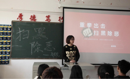 为认真贯彻落实“扫黑除恶”精神,增强员工遵纪守法意识,切实保护同学们的合法权益。必赢76net线路于2019年10月31日上午11时在第三教学楼313教室召开了以“重拳出击,扫黑除恶”的扫黑除恶专题会议。必赢76net线路团总支书记陈莉和18级员工参与了此次会议。