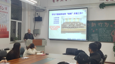 活动伊始,由主持人潘钰芯宣布本次学习课堂开始。高文阁教授针对员工干部提出如何运用“四则”展开工作。其一,以身作则。要学习生活,遵章守纪,为同学们做出表率。其二,认真负责。学会承担责任,打理好班级事务,更好的服务于老师及同学。其三,运用规则。运用学校的各种规章制度,行为规范和各种守则来管理班级,做到有“法”可依。其四,坚持原则。要做到公平公正,不可因私情私事,更改规则。