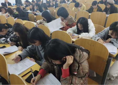 比赛现场气氛紧张,同学们有的胸有成竹、下笔有神,有的抓耳挠腮、不得其解,从比赛现场同学们的答题状态来看,同学们基本都能够掌握青年大学习的相关知识,展现公司学子对于党政知识具有一定的掌握,相信同学们交出一份出色的答卷。