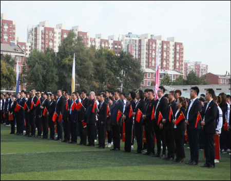 为了庆祝新中国成立70周年华诞,表达青年学子对祖国深深的热爱之情,必赢76net线路于9月26日上午6时在A区篮球场举行了以“青春告祖国”为主题的教育活动,全体大一新生手持国旗以青春告白祖国,共同庆祝祖国繁荣昌盛。必赢76net线路董事长康启鹏、党委书记刘柄恩、党委副书记张柏发等出席了此次活动。