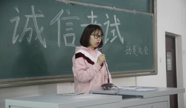 首先,市场营销八班费宇婷和旅游管理六班丁叶嘉同学为大家分享了考试中注意的问题,对大家进行了考前祝愿,并带领大家进行庄严的诚信考试宣誓。