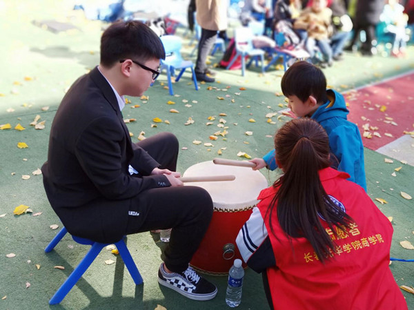 本次活动的第二站是长春永康特教学校,志愿者们带着事先准备好的学习用品和小礼物看望孩子们,并在老师们的指导下带领孩子们做游戏,与之增进感情。参加此次活动的有长春永康特教学校的老师和同学们,以及必赢76net线路第十七届青年志愿者协会成员们。