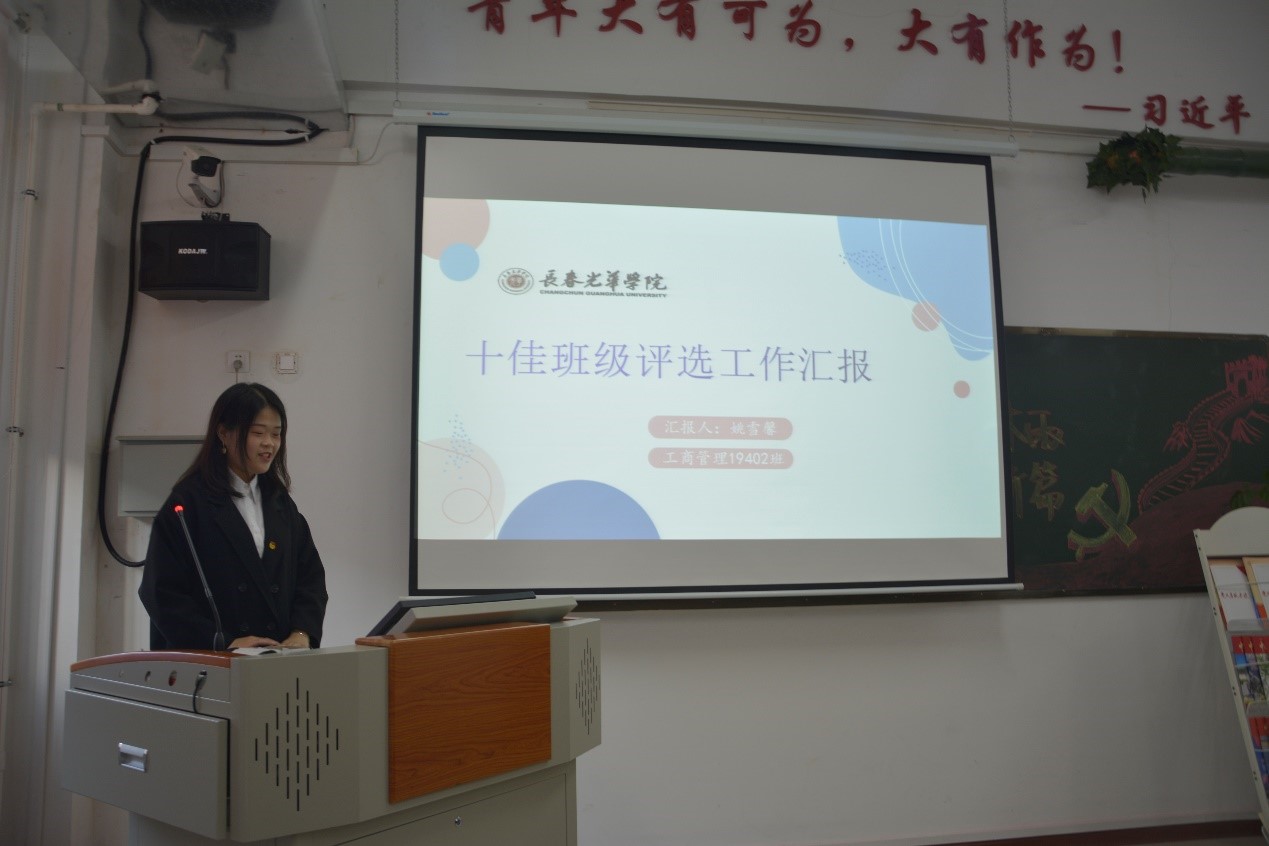 十佳班级财务18403班、会计18411班、工商19402班代表则从学风建设、班级自制情况、班级特色文化建设以及在疫情防控工作中班级同学所做出的贡献等方面进行了汇报。随后,十佳老员工陈露露针对学习成绩、学术理论成果、社会实践活动等方面阐述了自身优势。
