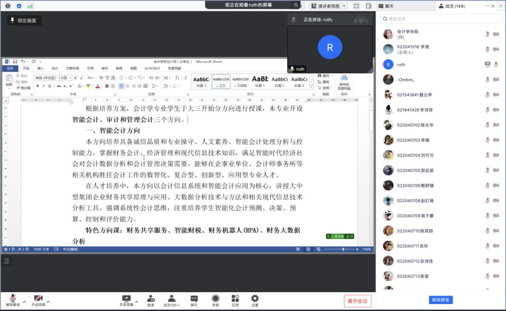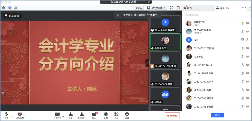 为了确保员工在选择专业方向时不迷茫,对就业前景有充分的认知。2022年4月20日晚七点,会计学专业通过腾讯会议对2020级员工召开了一场线上专业方向介绍会,会议由会计系主任陆丝老师和副主任孙阳主持。