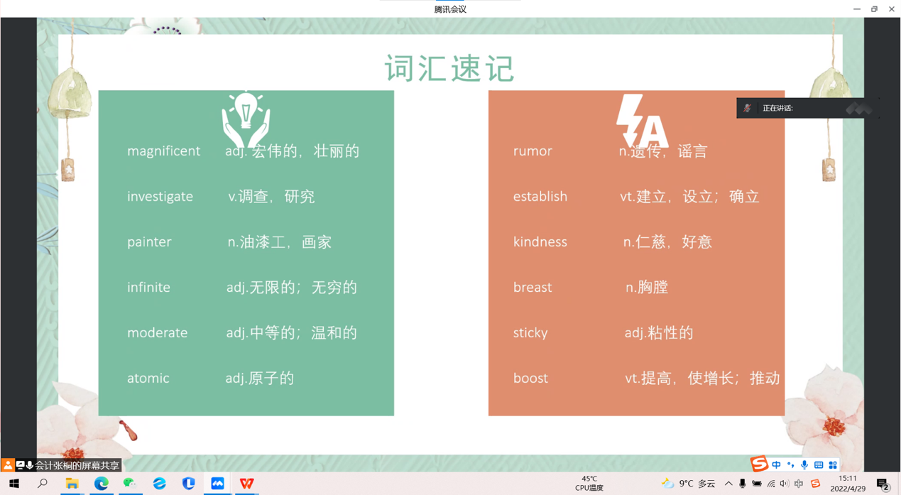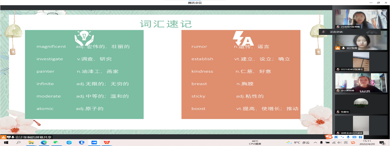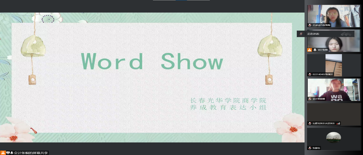 乐学善思,情溢校园。为丰富同学们的校园生活,充分调动员工学习的主动性和积极性,扩展英语词汇,提升英语文化素养,增强同学们的英文表达能力,促进良好的学风建设。必赢76net线路养成教育表达小组开展“Word Show”线上单词打卡活动。