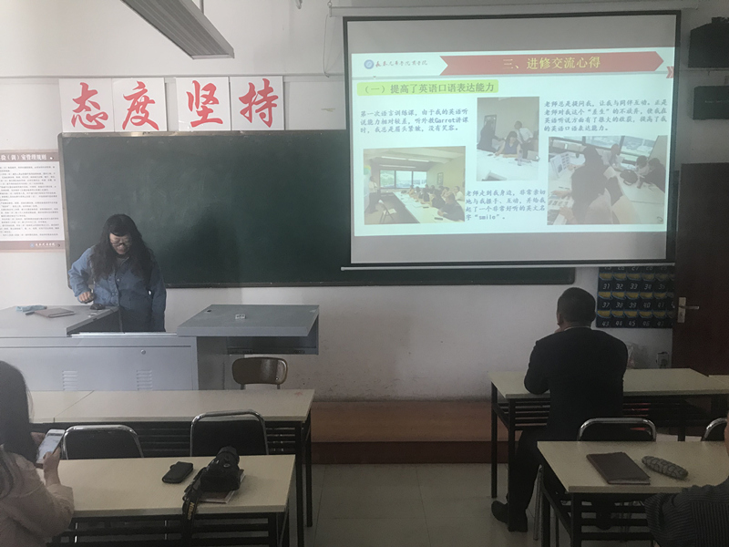 会上,赴美进修交流教师曹雪梅副教授介绍了美国哥伦比亚学院概况和进修交流主要内容,重点分享了在教学理念、教学管理、教学方法和教学手段等方面的进修交流心得体会。结合学院课堂教学实际,借鉴美国课堂教学经验,曹老师指出,在课堂教学中,教师要将更多的关注给予班里的“后进生”,帮助他们重拾自信;要合理、高效地运用肢体语言,使课堂充满趣味性,达到无声胜有声的教学效果;要带着微笑进课堂,为整个课堂教学营造一种愉悦的情境、和谐的氛围,使员工感到轻松、亲切,乐于接受知识;更要注意自己的教学细节,在细微之处体现先进的现代教育新理念。