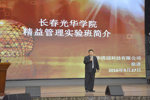 随后,长春华清园科技有限公司副总经理徐进详细介绍了公司基本情况、实验班的定位、培养目标、培养内容和方法、课堂组织形式、专家导师、实习及就业企业、就业安排及要求、职业认证、实验班考核录取安排等员工关心的热点问题。他强调,精益管理实验班将秉承“习实务、融校企、塑能力、促成长”的理念,培养员工卓越管理能力,使员工真正成为能够给别人创造价值的人。