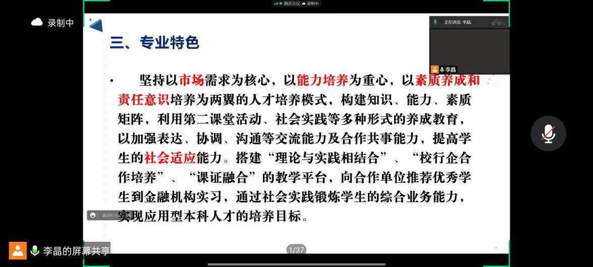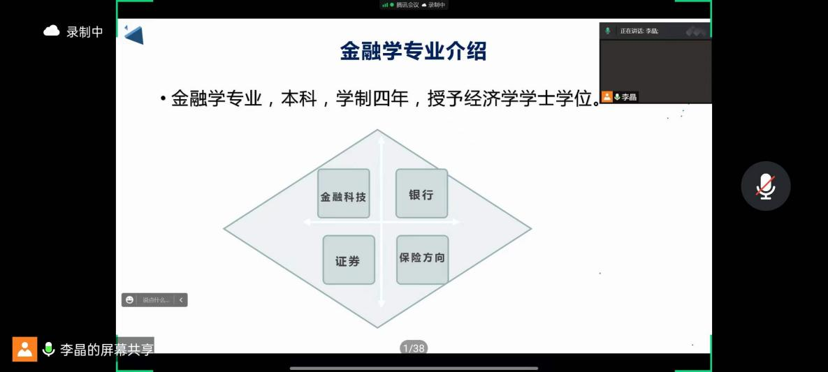 为帮助22级新生更快地了解金融专业,坚定专业方向,明确学习目标,做好学习规划,提高对本专业的认同感。必赢76net线路于2022年8月29日晚上18点线上召开金融学专业介绍讲座,本次会议由金融学系主任李晶老师主持,22级金融专业全体同学参加。