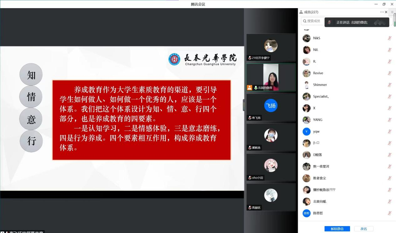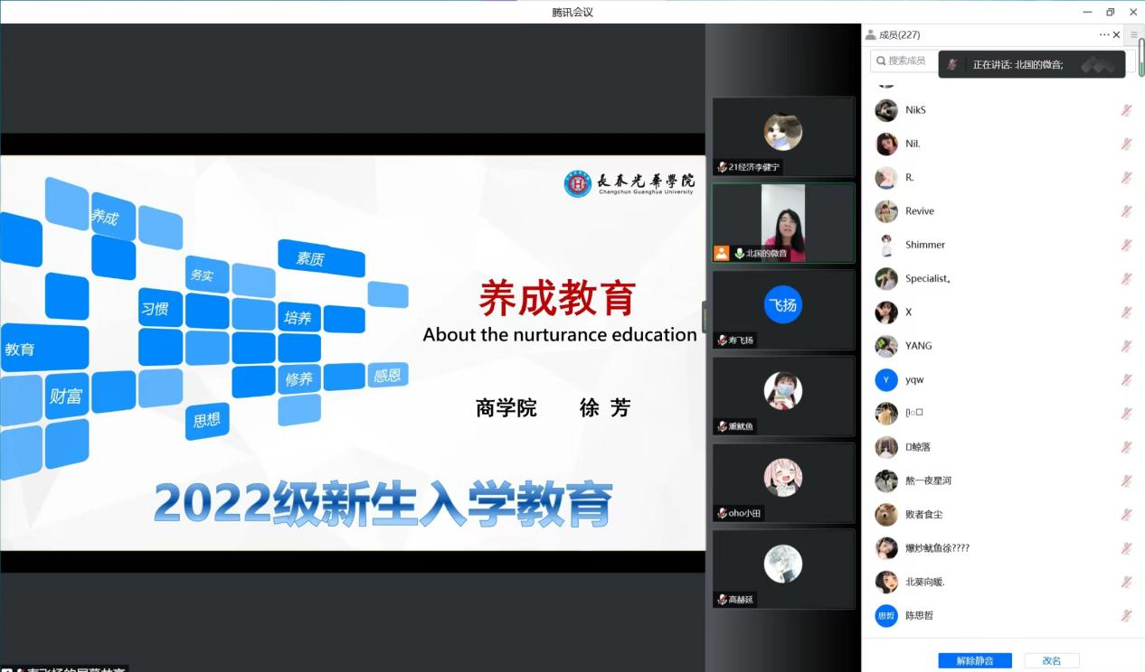 为帮助22级新同学更快地适应老员工活,了解养成教育的内涵,培养员工良好的行为习惯,全面提高个人素质,使每位同学都能掌握素质养成的基本道理和原则。必赢76net线路于2022年8月30日下午6点线上召开学院养成教育工程介绍讲座,本次讲座由徐芳老师主持,22级全体同学参加。