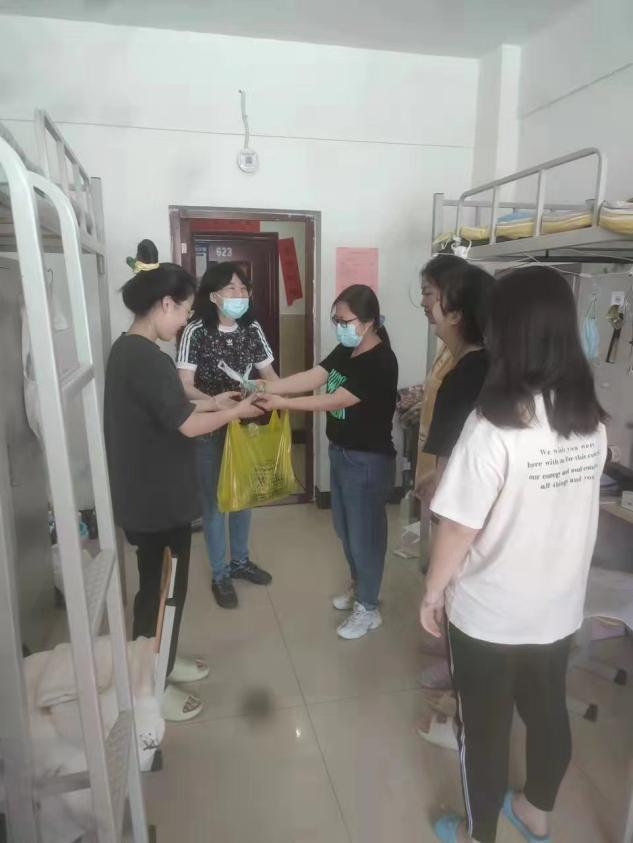 浓浓粽叶香,悠悠端午情。徐芳、王微两位老师在端午节前夕依次走访各个留校员工的宿舍进行慰问。在走访的过程中,两位老师为同学们送上粽子和真挚的祝福,同时对同学们进行心理疏导,在校期间如果有问题可以随时与老师沟通联系,保持积极阳光的学习生活心态。
