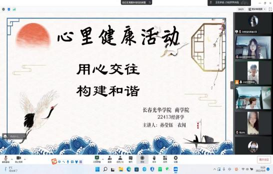 为了减低22级新生来到新环境的紧张感,在封校管理期间依旧保持积极乐观的心态,提高员工心理调节能力,培养良好心理品质,提升员工思想道德素质,必赢76net线路于2022年10月23日开展了“用心交往,构建和谐”心理健康晴雨表活动,本次活动由孙莹钰为主讲,22级全体成员参加。