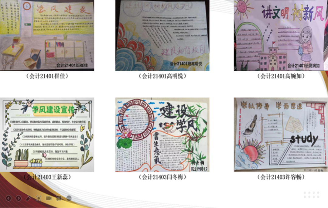 演讲结束后,马上进入活动第二项:全员投票环节,同学们根据演讲比赛评分细则投出自己宝贵的一票。与此同时,主持人依次介绍了来自各班同学们以“宣传学风建设”为主题绘制的精美手抄报,每一张都能展现出同学们的用心和端正的学习态度。