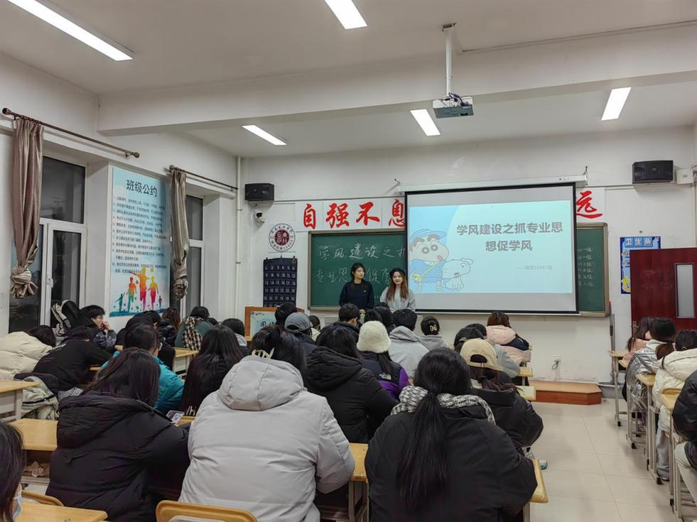 为深入学习习近平总书记关于教育工作与青年工作系列重要论述精神,不断提高人才培养质量,引导员工树立正确的学习观念,必赢76net线路学风建设之抓专业思想促学风小组于11月21日18时在第三教学楼105教室举办了以“凝心聚力树学风,学思砥砺向未来”为主题的专业知识竞赛,22级国贸专业全体同学参加。